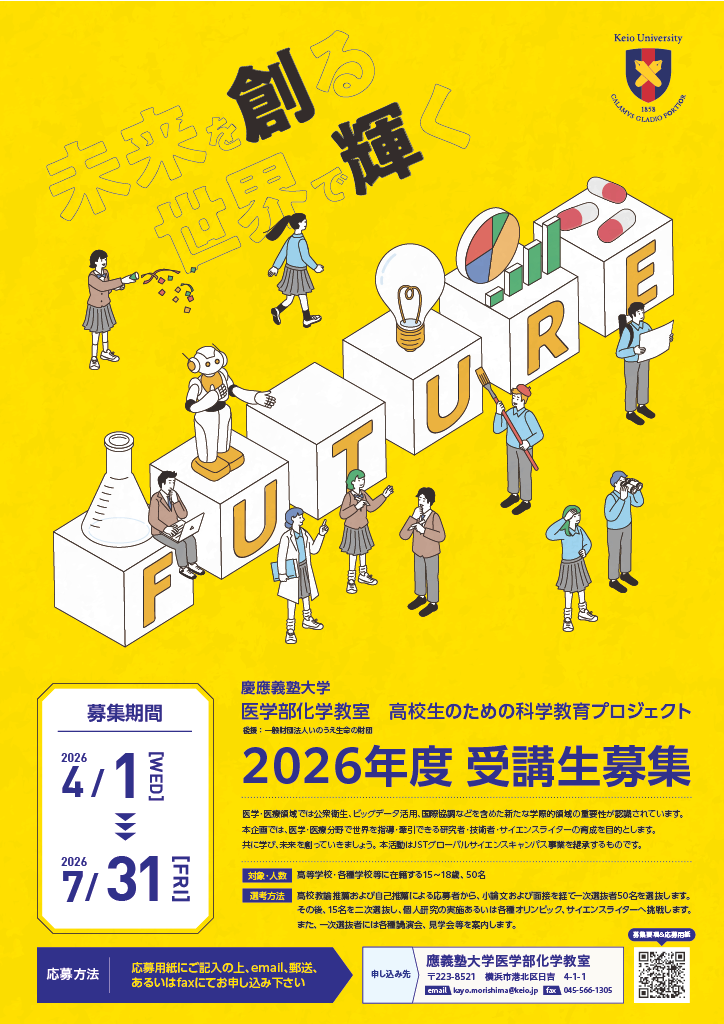 應義塾大学医学部化学教室「高校生のための科学教育プロジェクト」を当教室主催で実施致します。