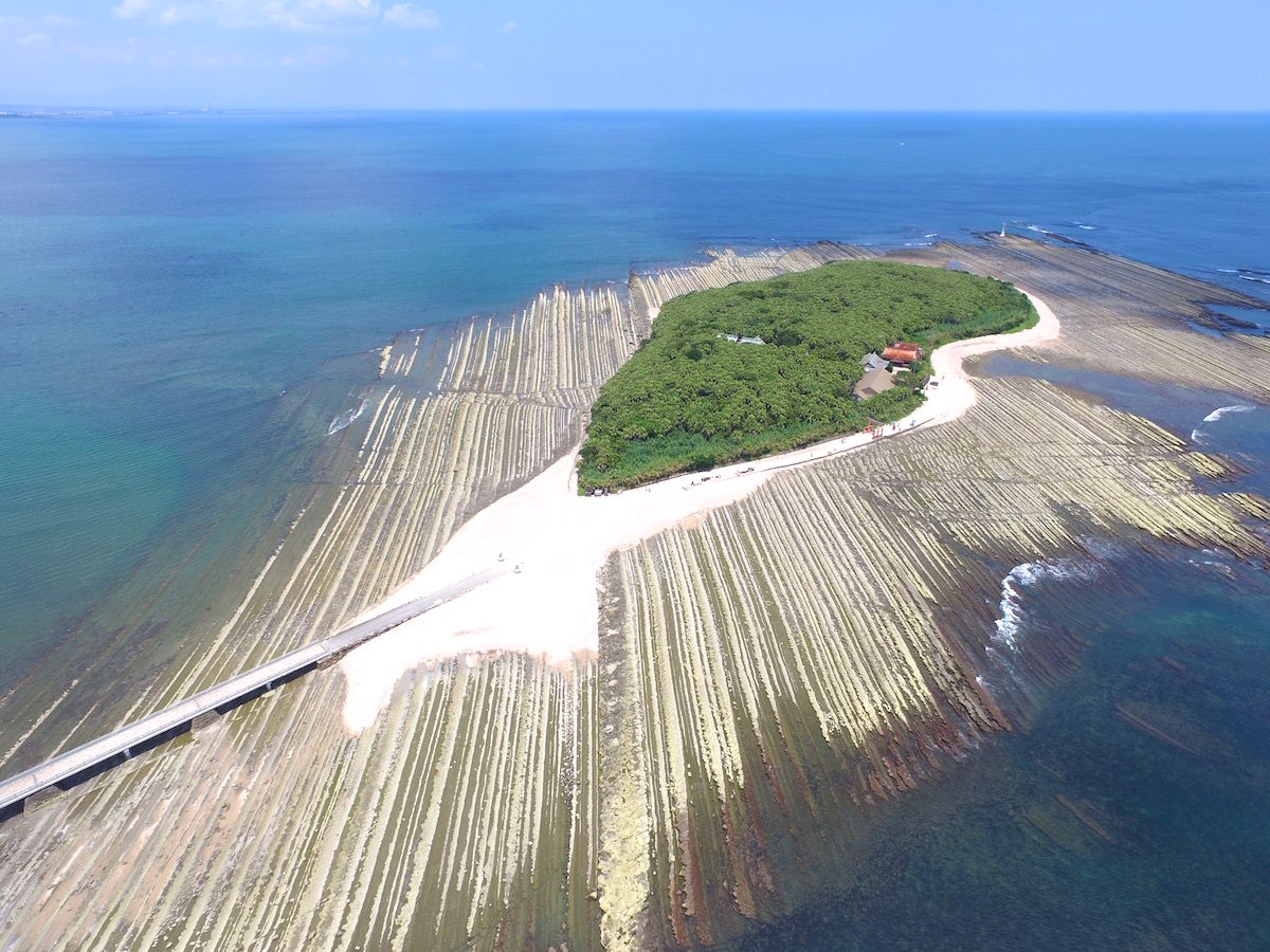 島を取り囲む有名な奇岩「鬼の洗濯板」も見どころです。